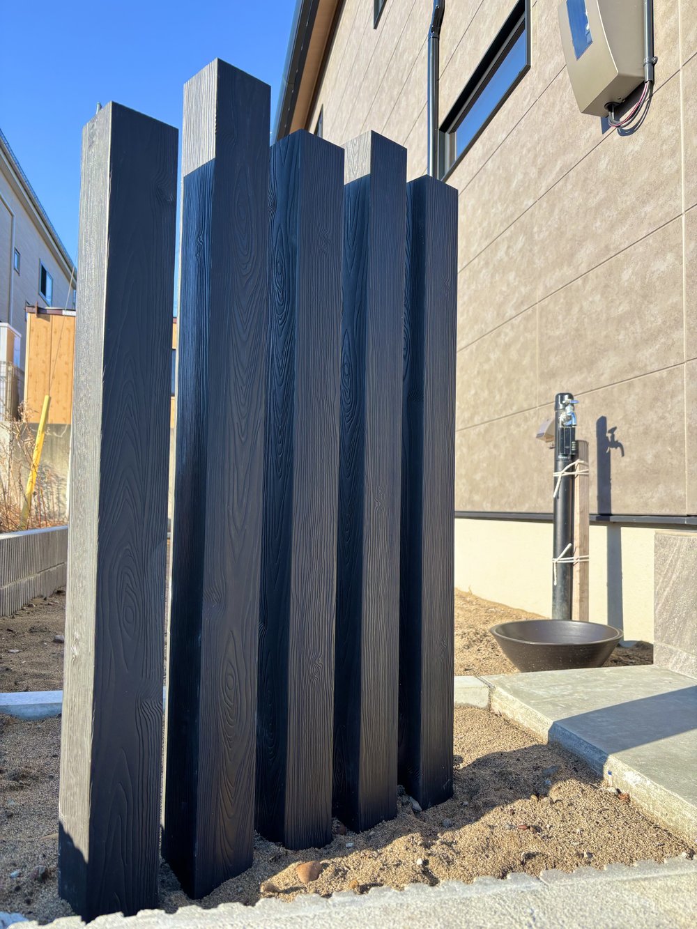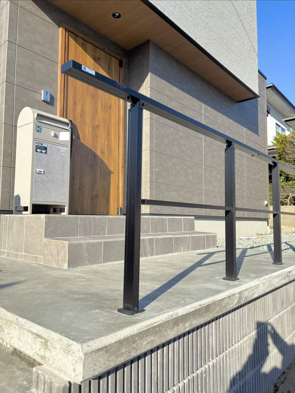秋田市 I様邸 外構工事(車庫土間・境界ブロック・アプローチ階段・手すり・物置・デザインポール・花壇)